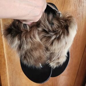 Brunello Cucinelli 100%โ Plush Fur Toe Strap Sandals A176