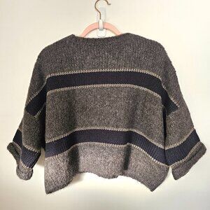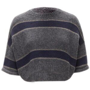 Brunello Cucinelli Alpaca Virgin Wool Metallic Stripe Cropped Sweater, XL, Grey