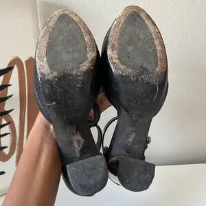 Brunello Cucinelli Black Leather Platform Block Heel Peep T-Strap Sandals 40.5