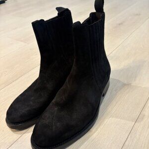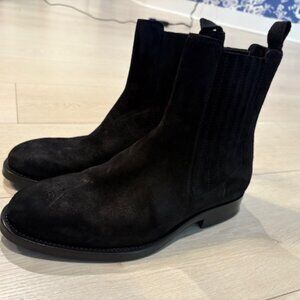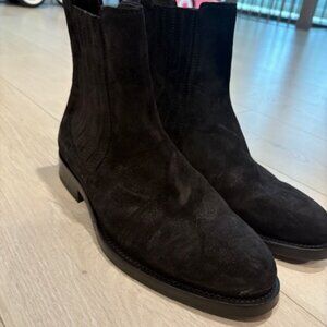 These boots are in very good condition. There is a minor scuff on the front left which can be seen in the photos.