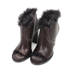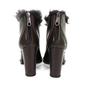 Brunello Cucinelli Brown Fur Trim Open Toe Leather Ankle Bootie 37 Heel Sandals