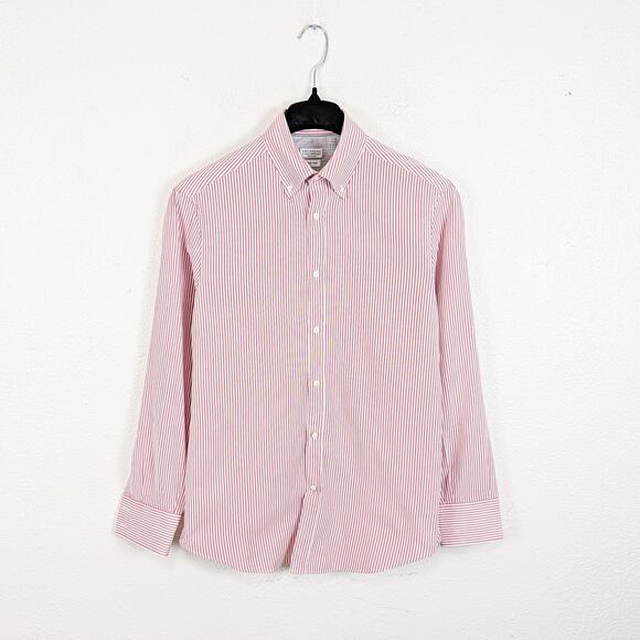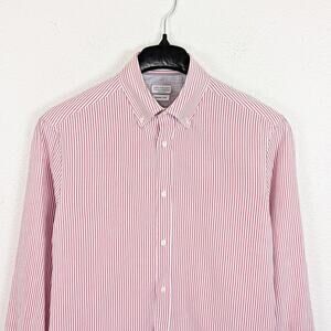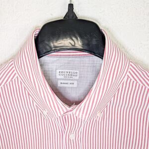 Brunello Cucinelli Button Down Shirt Oxford cotton Large Red White stripe