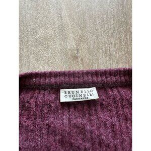 Brunello Cucinelli Cashmere Purple Cable Knit Sweater V Neck Front Pockets XS. Overall in great condition, just has some pilling from normal wear and one tiny hole in the front - just needs one stitch on the inside to pull the hole shut.