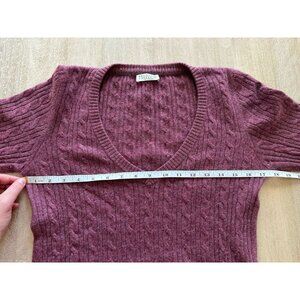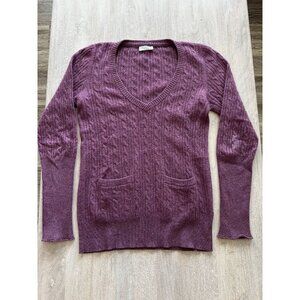 Brunello Cucinelli Cashmere Purple Cable Knit Sweater V Neck Front Pockets XS