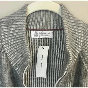 Brunello Cucinelli Cashmere Vanisé English Rib Cardigan w/Zipper IT 62 US XXL