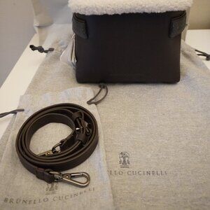 Brunello Cucinelli Essence Bag Brown Leather SM Top Handle Monili Crossbody New