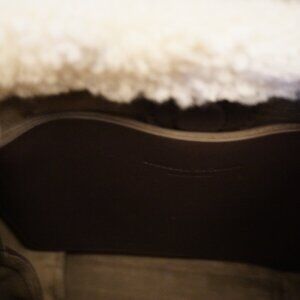 Essence Small Suede Top Handle Bag in Brown Leather with Shearling Trim