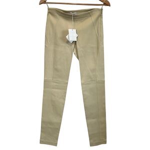Brunello Cucinelli Genuine Leather Skinny Pants/Leggings In Beige Size 4.