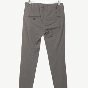 Made in Italy, these pants from Brunello Cucinelli are crafted in a grey stretch cotton twill, and feature a front hook and zip fly closure, belt loops, back buttoned welt pockets, a panelled design, and skinny-cut legs.