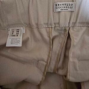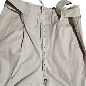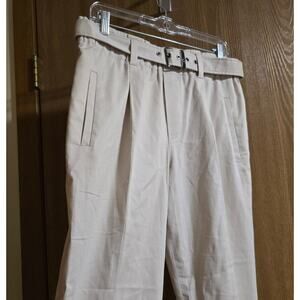 Brunello Cucinelli Single Pleated High Rise Paperbag Pants With Belt in the color beige, size 8 US / 44 Italian. The belt is removable. In excellent prelove condition. No flaws seen. Made in Italy.