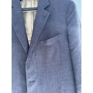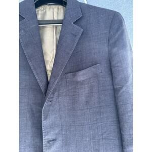 Good, gently used condition. Beautiful soft linen silk wool summer blend. Lightweight and breathable. Beautiful subtle plaid print, pick stitching, 3/2 roll, double vented. Amazing quality from one of the greatest names in menswear
