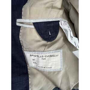Brunello Cucinelli Linen Blend Sport Jacket Navy Blue Plaid Size 50/40 Italy Men