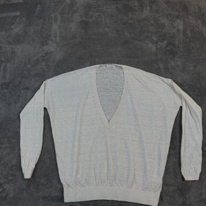 Brunello Cucinelli Linen Sweater Deep V-Neck Natural Linen Color T044 C2350