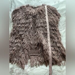 Stunning sleeveless fringe vest from brunello cucinelli. Size XL but can likely fit smaller. Color is a pretty muted blush mauve/taupe. Needs a good steam to get the fringe more tamed but otherwise excellent condition