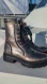 Gorgeous calf leather lug sole boots with a diamond cut brass Monili chain detail. Rugged black platform lug sole. 1.5" heel.