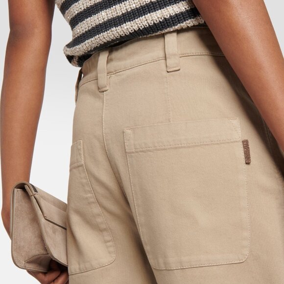Brunello Cucinelli Monili Jeans Khaki Twill Denim Wide Leg High Waist Size 8