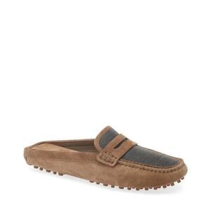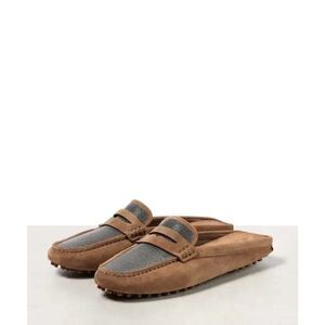 Brunello Cucinelli Monili Suede Driving Mules Brown 40