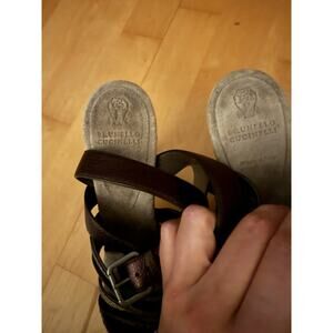 Brunello Cucinelli Multi-Leather Monili Strap Beaded Sandal 38