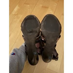The Brunello Cucinelli Multi-Leather Monili Strap Beaded Sandal 38 is a luxurious and stylish women's heel crafted in Italy. This high-heeled sandal features a unique combination of multi-textured and shiny leather straps, accented with delicate monili bead encrusting and colorful beading details. The ankle strap design and open toe shape add a touch of sophistication to any outfit, making it a versatile and chic option for fashion-forward women. Made from 100% leather, these sandals are a perfect blend of comfort and elegance, perfect for adding a pop of color and texture to any ensemble.
