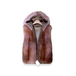 The Brunello Cucinelli reversible vest is a masterpiece of luxury and versatility. One side showcases opulent fox fur in a delicate blend of feminine pink and gold hues, exuding elegance and warmth. The reverse side features rich brown goat hair, offering a sophisticated alternative. Designed with a cozy hood and dual side pockets on each side, this vest is both practical and stylish. The zipper closure is adorned with a sparkling golden-tone monili beaded pull, adding an extra touch of glamour to this already stunning piece. Impeccably crafted in Italy, this vest is the perfect fusion of timeless beauty and modern sophistication.