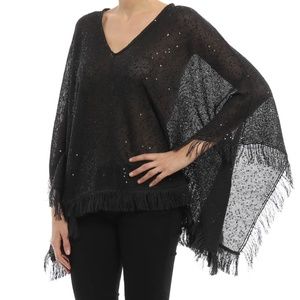 Brunello Cucinelli Sequined Linen and Silk Poncho. Size XS - oversized. Linen / silk blend poncho with sequins; v-neck and fringed hem. Dark charcoal color. Preowned in excellent condition. Message me with questions.
