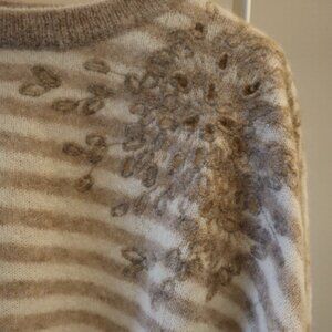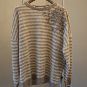 Brunello Cucinelli Sequins Sweater Beige Tan Stripe Alpaca Blend New Tag Size XL