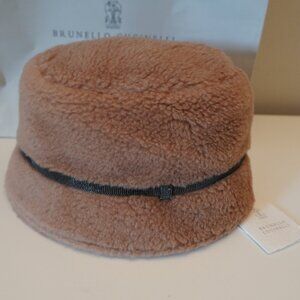 Brunello Cucinelli Shearling Bucket Hat Monili Trim Size Medium New Tags $995