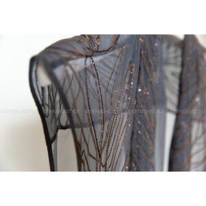 This Brunello Cucinelli sleeveless blouse features a sheer, lightweight fabric adorned with delicate leaf embroidery that adds texture and subtle shimmer. Designed with an open front, it includes a matching tie belt to cinch the waist for a flattering silhouette. The draped hemline and fluid construction create graceful movement, while the intricate detailing reflects the brand’s refined craftsmanship. Perfect for layering, this piece offers a versatile option that transitions effortlessly from day to evening.