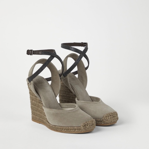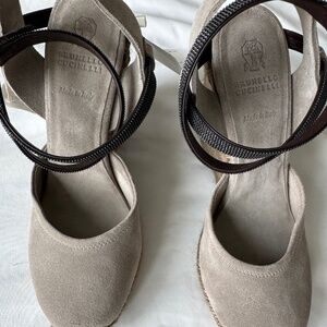 Brunello Cucinelli Suede Strappy Wedges Size 38