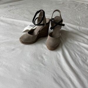 The light, velvety texture of suede gives the footwear a soft touch. The cord-covered wedge bottom and rubber outsole provides the fit with added comfort.