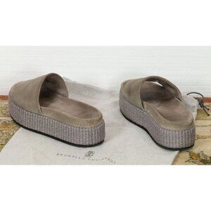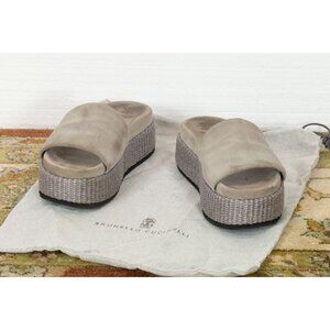 Brunello Cucinelli Suede and Raffia Platform Slides Size 7