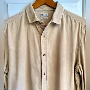 This luxurious and versatile Brunello Cucinelli shirt in a classic tan color is crafted for casual elegance. Made from a gorgeous textured fabric, it offers a comfortable and relaxed fit, perfect for everyday wear. The classic design features a pointed collar and buttoned cuffs, making it a timeless addition to any wardrobe. Size XL, which fits more like a L. Only worn twice. Excellent gently used condition with no stains, tears, flaws, or discoloration.