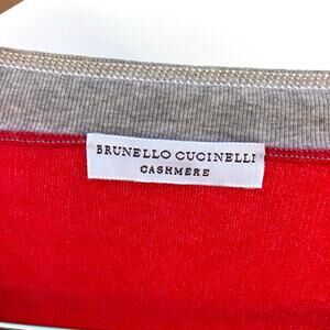 Brunello Cucinelli V-Neck Sporty Preppy Cashmere Sweater Red Gray Jumper Small
