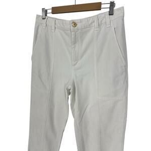 The Brunello Cucinelli White Patch Pocket Utility Pants combine refined Italian tailoring with relaxed sophistication. Crafted in Italy from a soft, lightweight cotton blend with a touch of stretch, these pants feature a straight-leg silhouette with modern seam detailing and utilitarian-inspired patch pockets at the hips and back. The zip and button closure and mid-rise waist create a polished yet comfortable fit, while the minimalist design and crisp white tone embody the effortless elegance that defines Brunello Cucinelli’s craftsmanship. Perfect for pairing with linen shirts, silk blouses, or cashmere knits for year-round wear.