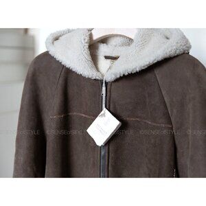 Brunello Cucinelli Women Leather Fur Coat Hooded Monili Jacket size 40 S