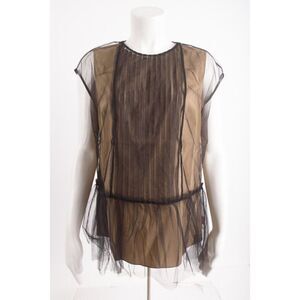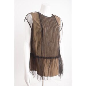 Brunello Cucinelli Women Tulle Overlay Peplum Blouse Top Shirt L Black Brown NWT new with tags