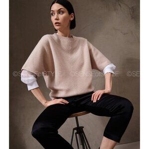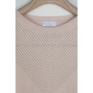 Brunello Cucinelli Women's Cashmere Sweater Monili Trim Pink Pullover Size S