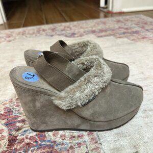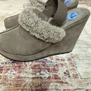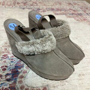 Brunello Cucinelli Women's Gray Shearling-lined Slingback Heels Size 7.5 NEW!!