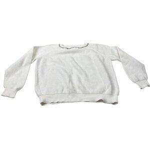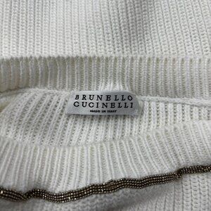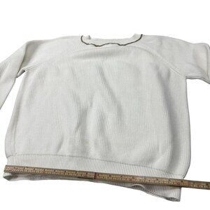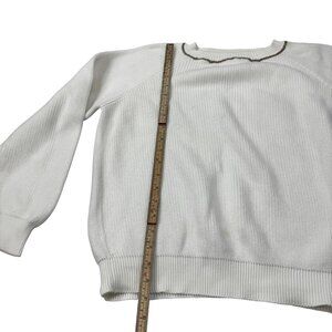 Brunello Cucinelli Womens White Knit Sweater With Metallic Trim Detail Size L Ma