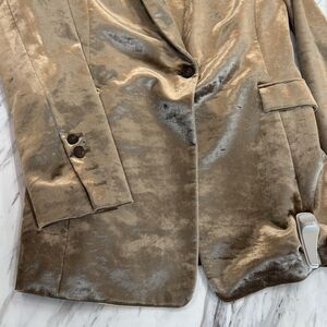 Elevate your style with this luxurious velvet blazer. Perfect for any occasion, this tan jacket adds a touch of elegance to your wardrobe.