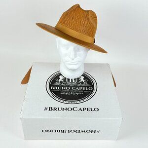 Bruno Capelo Mens 7.5" 75/8 Straw Amish Hat X-Large Tan & Red Farmer Style