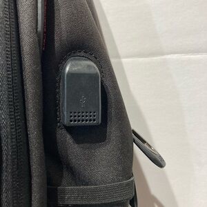 Very nice tech pack in back with computer compartment and 5 zippered accessory pockets. This bag has a USB charger for computer battery or phone backup. Very nice with adjustable straps.