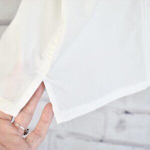 By Bruno New York. Classic Hawaiian style embroidered and pleated front short sleeve button up shirt features lightweight cotton / poly blend. straight vented hem. perfect for casual wedding, summer events. Shirt is pure white - no yellowing - not ivory as it photographed.