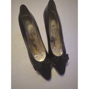 Elegant vintage Bruno Magli heels in classic black leather. Pointed toe with suede bow and gold-tone accents. Made in Italy, high-quality craftsmanship. Perfect for dressy or work wear.