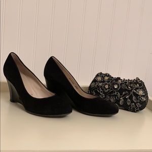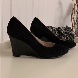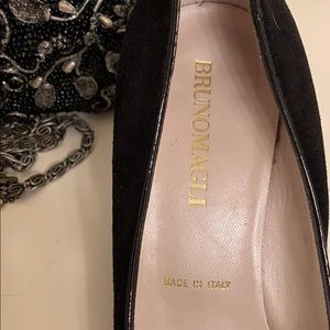Bruno Magli Black Velour and Patent Leather Wedges