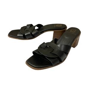 M by Bruno Magli Aria Black Leather Slip On Block Heel Sandals 9.5 (39.5)