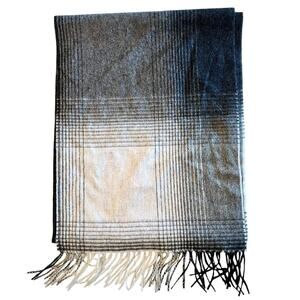 Bruno Magli Cashmere Plaid Scarf Gray Mens Womens Fringe Rectangle Academia