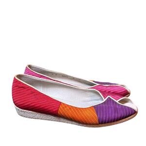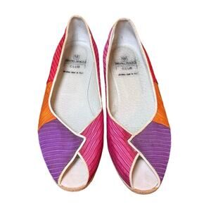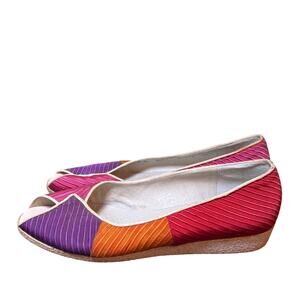 Bruno Magli Club Size US 7.5 Purple Pink Orange Patchwork Open Toe Wedge Shoes