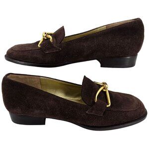 Bruno Magli Italy Womens 6.5AA Brown Suede Leather Dress Shoes Horsebit Loafers