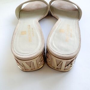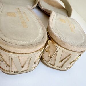 Bruno Magli Leather Suade Sandals with Metal Ornate Heels Made in Italy Size 40